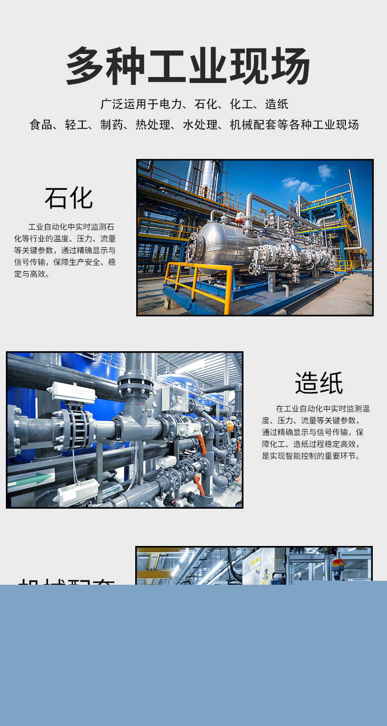 虹潤(rùn)公司是專業(yè)生產(chǎn)數(shù)顯表的國(guó)家專精特新“小巨人”企業(yè),生產(chǎn)的簡(jiǎn)易型數(shù)字顯示控制儀,具有全切換信號(hào)輸入,多種外形尺寸,高抗干擾,輸入/輸出/電源三隔離,性價(jià)比高等特點(diǎn)。該產(chǎn)品不僅通過(guò)德國(guó)萊茵 CE 認(rèn)證,還獲得巡回檢測(cè)顯示方法及裝置、儀表殼體等2項(xiàng)國(guó)家發(fā)明專利,主持起草工業(yè)過(guò)程控制系統(tǒng)用模擬輸入兩位或多位輸出儀表、物聯(lián)網(wǎng)智能溫度儀表通用技術(shù)條件等2項(xiàng)國(guó)家標(biāo)準(zhǔn),以及通信系統(tǒng)多通道數(shù)據(jù)采集控制終端規(guī)范軍用標(biāo)準(zhǔn),參與國(guó)際5G標(biāo)準(zhǔn)制定,取得簡(jiǎn)易數(shù)顯儀表等3項(xiàng)相關(guān)軟件著作權(quán)。產(chǎn)品廣泛應(yīng)用于電力、石化、冶金、化工、造紙、食品、輕工、制藥、熱處理、水處理、機(jī)械配套等各種工業(yè)現(xiàn)場(chǎng)。
