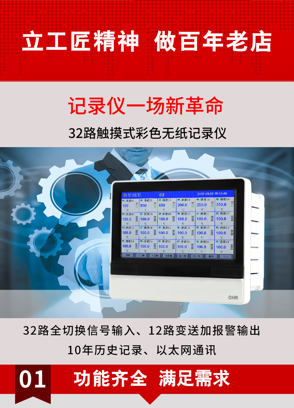 虹潤(rùn)公司是專(zhuān)業(yè)生產(chǎn)無(wú)紙記錄儀的國(guó)家專(zhuān)精特新“小巨人”企業(yè)。生產(chǎn)的觸摸式彩色無(wú)紙記錄儀,具有32路全切換輸入,通道之間相互隔離,數(shù)據(jù)記錄與轉(zhuǎn)存功能,配套上位機(jī)管理軟件,RS485/以太網(wǎng)通訊等特點(diǎn)。產(chǎn)品獲得無(wú)紙記錄儀、數(shù)據(jù)采集控制工作站、智能化控制器、巡回檢測(cè)顯示方法及裝置等4項(xiàng)國(guó)家發(fā)明專(zhuān)利;主持起草物聯(lián)網(wǎng)智能記錄儀表通用技術(shù)條件、物聯(lián)網(wǎng)智能溫度儀表通用技術(shù)條件等2項(xiàng)國(guó)家標(biāo)準(zhǔn),通信系統(tǒng)多通道數(shù)據(jù)采集控制終端規(guī)范軍用標(biāo)準(zhǔn),以及空間數(shù)據(jù)與信息數(shù)據(jù)傳輸系統(tǒng)等2項(xiàng)航天標(biāo)準(zhǔn)。參與國(guó)際5G標(biāo)準(zhǔn)制定;取得觸摸式彩色無(wú)紙記錄儀等4項(xiàng)相關(guān)軟件著作權(quán)。產(chǎn)品廣泛應(yīng)用于石化、冶金、電力、制藥、新能源、農(nóng)業(yè)等諸多領(lǐng)域。