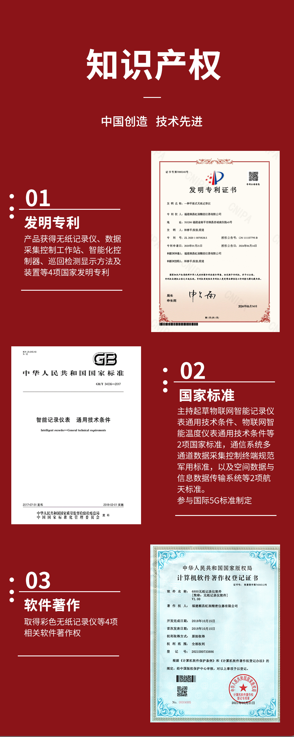 虹潤公司是專業(yè)生產(chǎn)無紙記錄儀的國家專精特新“小巨人”企業(yè)。生產(chǎn)的彩色無紙記錄儀,具有8路全隔離輸入,數(shù)據(jù)記錄與轉(zhuǎn)存,配套上位機(jī)管理軟件,RS485/以太網(wǎng)通訊等特點(diǎn)。產(chǎn)品獲得無紙記錄儀、數(shù)據(jù)采集控制工作站、智能化控制器、巡回檢測顯示方法及裝置等4項(xiàng)國家發(fā)明專利;主持起草物聯(lián)網(wǎng)智能記錄儀表通用技術(shù)條件、物聯(lián)網(wǎng)智能溫度儀表通用技術(shù)條件等2項(xiàng)國家標(biāo)準(zhǔn),通信系統(tǒng)多通道數(shù)據(jù)采集控制終端規(guī)范軍用標(biāo)準(zhǔn),以及空間數(shù)據(jù)與信息數(shù)據(jù)傳輸系統(tǒng)等2項(xiàng)航天標(biāo)準(zhǔn),參與國際5G標(biāo)準(zhǔn)制定;取得彩色無紙記錄儀等4項(xiàng)相關(guān)軟件著作權(quán)。產(chǎn)品廣泛應(yīng)用于石化、冶金、電力、制藥、新能源、農(nóng)業(yè)等諸多領(lǐng)域。
